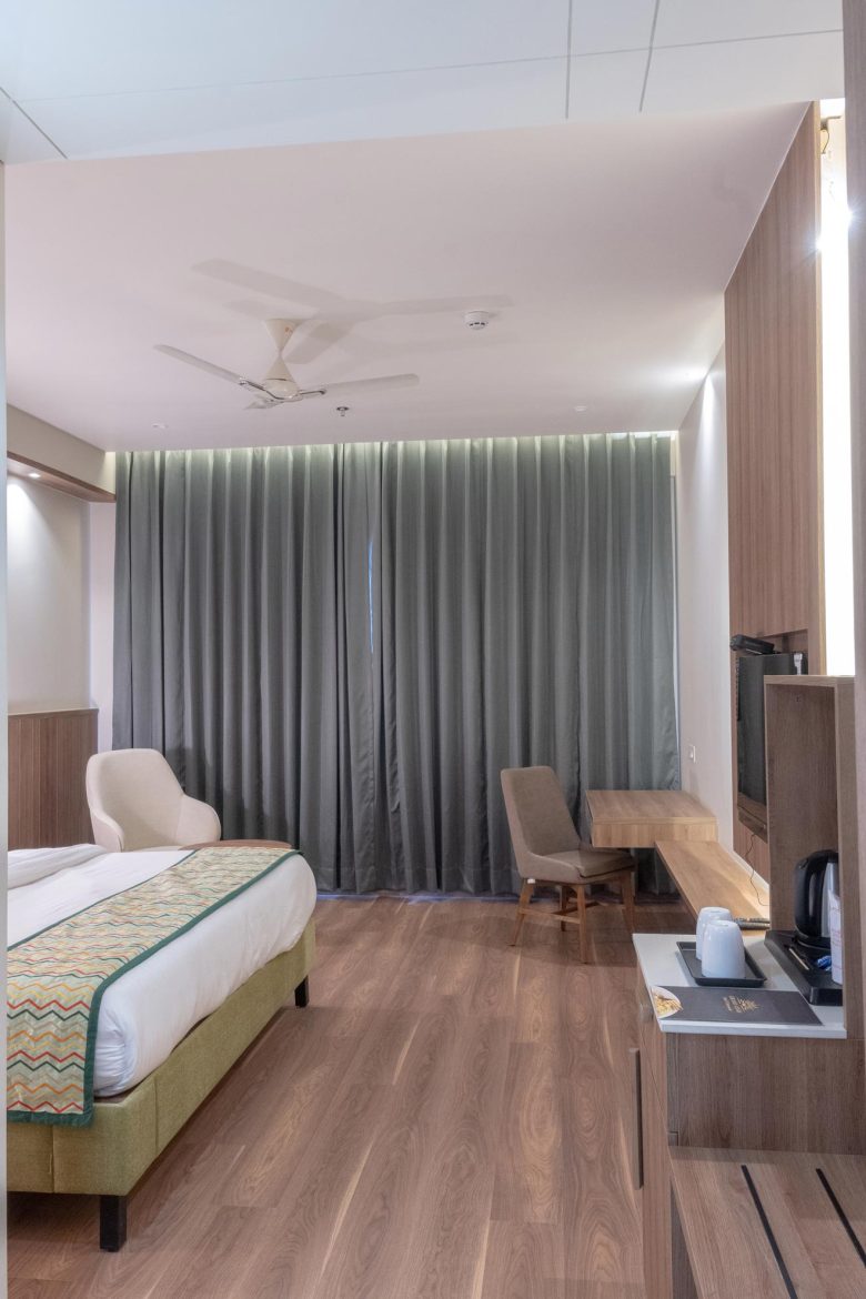 Introducing our Luxury Rooms at Hotel Grand Uday, Salasar. Here, comfort and convenience are paramount, ensuring a memorable stay for every guest. Relax in style with modern amenities including a Smart TV for entertainment and a mini-fridge for your refreshments. Drift off into a peaceful slumber on our comfortable beds, and wake up refreshed and ready to explore. Freshen up in the spacious washroom equipped with premium toiletries, before heading out for the day. Our commitment to your comfort extends to every detail, from the cozy furniture to the thoughtful touches throughout the room. Experience the essence of luxury at Hotel Grand Uday, where your comfort is our priority. We look forward to welcoming you to Salasar for an unforgettable stay.